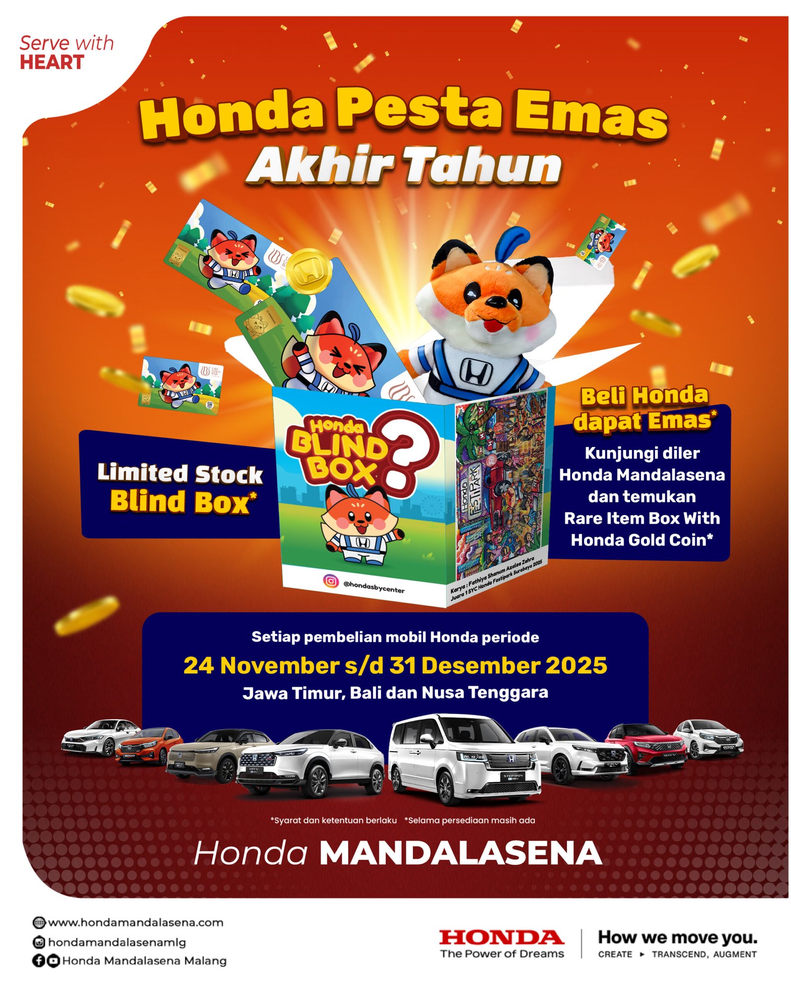 Honda Pesta Emas Akhir Tahun di Diler Honda Mandalasena, Berburu Hadiah Gold Coin Eksklusif! December 22, 2025 Honda Mandalasena menghadirkan Honda Pesta Emas Akhir Tahun, sebuah program spesial yang dirancang