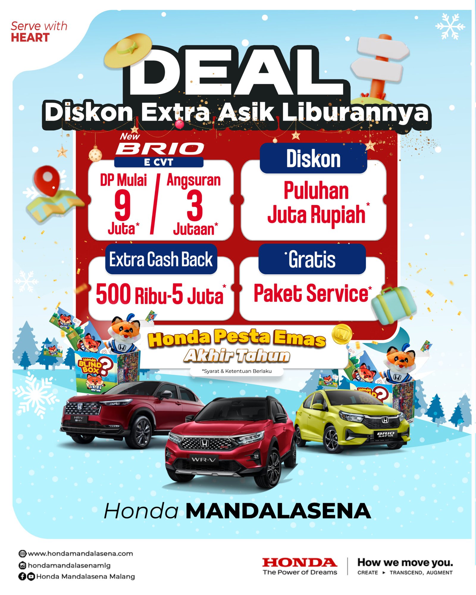 Promo Akhir Tahun Honda Mandalasena Malang December 15, 2025 Honda Mandalasena menghadirkan promo spesial akhir tahun bertajuk Deal Diskon Extra Asik Liburannya