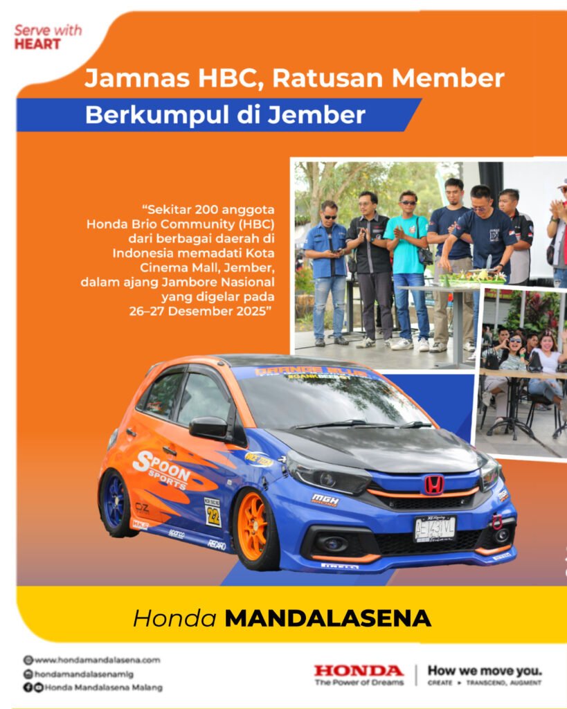Ratusan anggota Honda Brio Community (HBC) dari berbagai daerah di Indonesia berkumpul dalam ajang Jambore Nasional (Jamnas) yang digelar di Kota Jember. Acara ini menjadi momentum penting bagi para pecinta Honda Brio untuk mempererat solidaritas komunitas sekaligus berbagi pengalaman seputar dunia otomotif.
